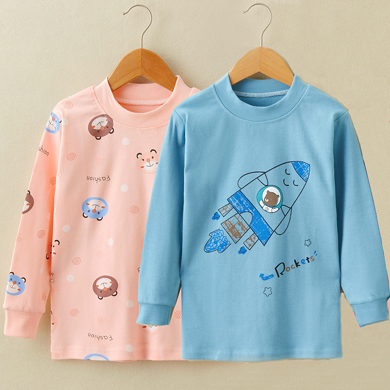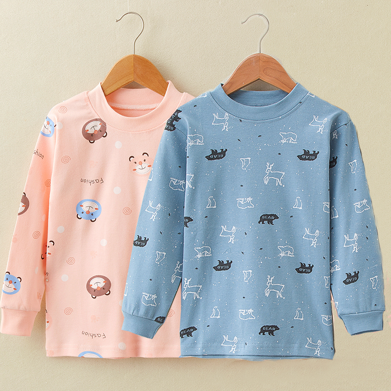 Children All-pure Cotton Single Piece Cotton Sweatshirt High School Low Round Collar Autumn Clothing Shirt Underwear Blouse Blouse Blouse Male and female