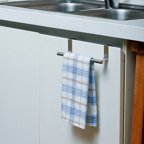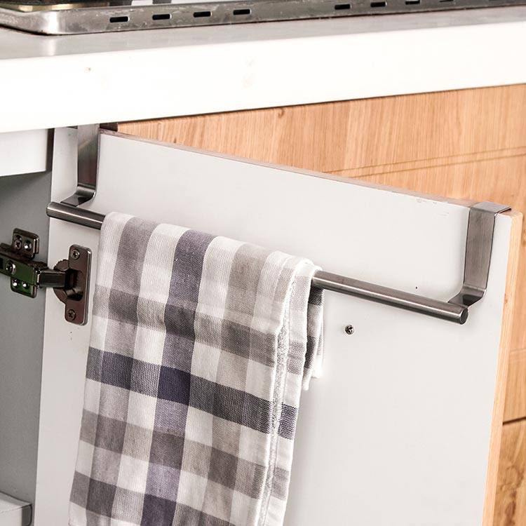 Integral cabinet door back stainless steel hook long cylindrical cross bar drawer seamless nail-free hook hanging towel wipe tablecloth
