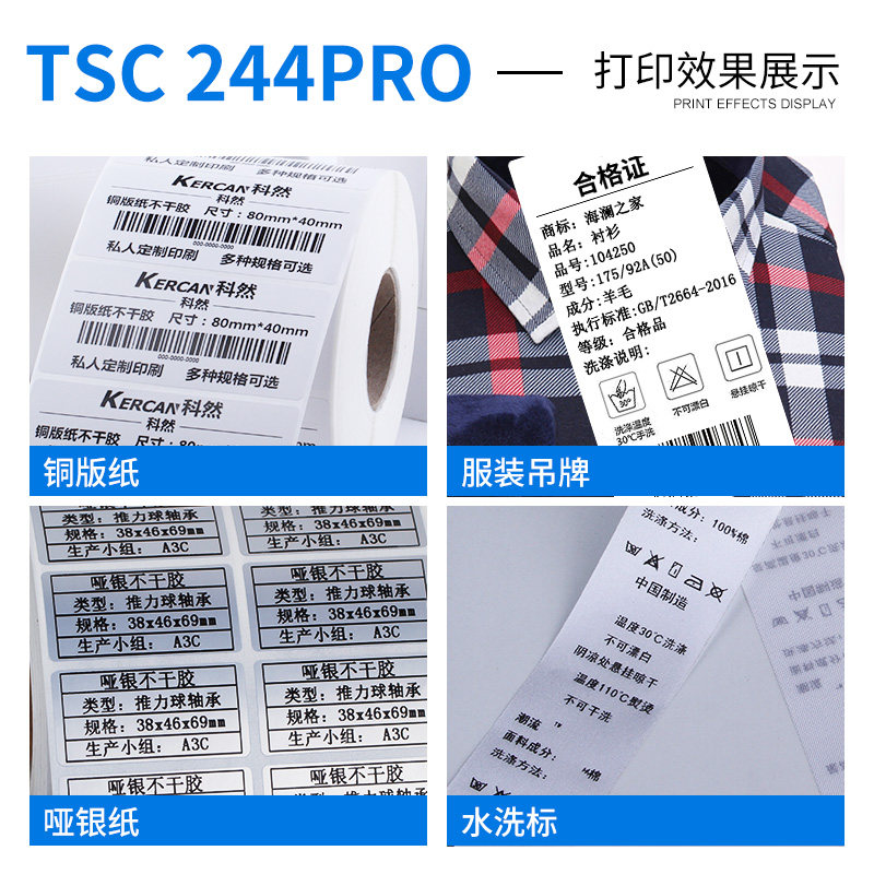 TSC ttp-244pro label printer Bar code printer Self-adhesive thermal paper Clothing tag washing label label paper sticker Asian silver paper label machine TSC label machine Asian silver paper