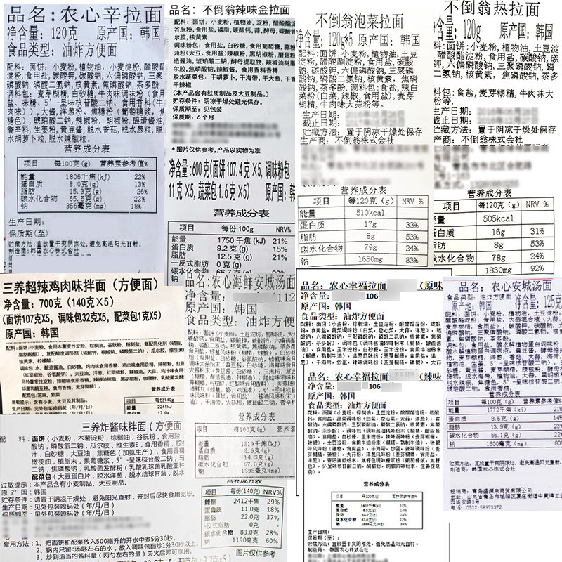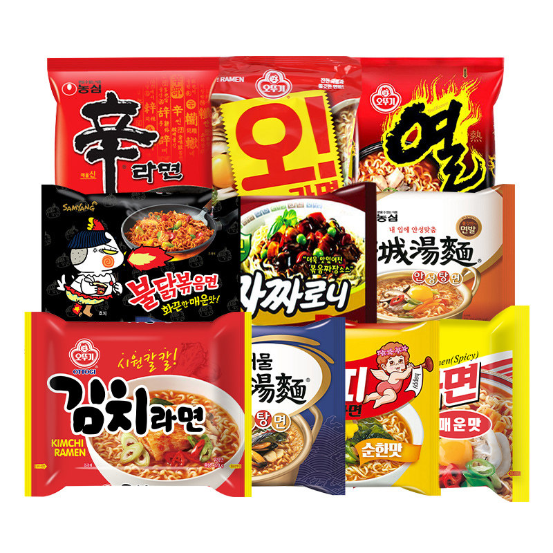 Ramen imported from South Korea 9 bags of 9 flavors (1 bag free, 10 bags in total) Nongshim classic domestic 8 flavors 8 bags Samyang turkey noodles 5 bags Jajang noodles 5 bags Samyang turkey noodles 5 bags Nongshim Xin