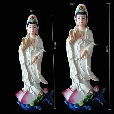26-inch ceramic color station lotus Guanyin Bodhisattva enshrined in the clubhouse Home Buddha statue decoration Dehua white porcelain craft gift decoration