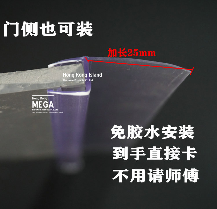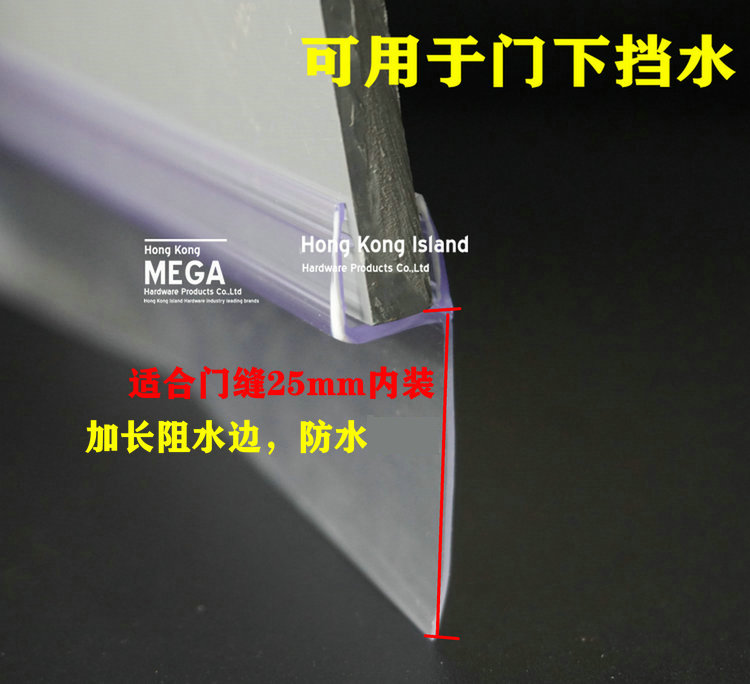 h type lengthened side 25mm glass door sealing bar bathroom shower room water retaining strip waterproof strip without frame window windproof strip