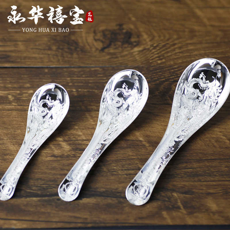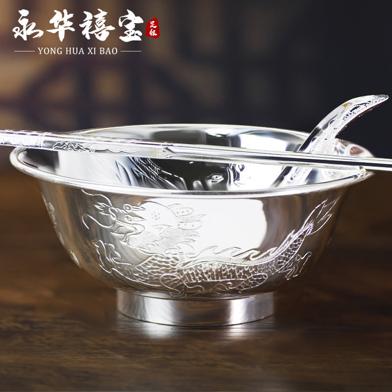 Yonghua Jubao 999 Silver Bowl Dragon and Phoenix Bowl Chopsticks set Baby Bowl Spoon Silver Tableware for Gift