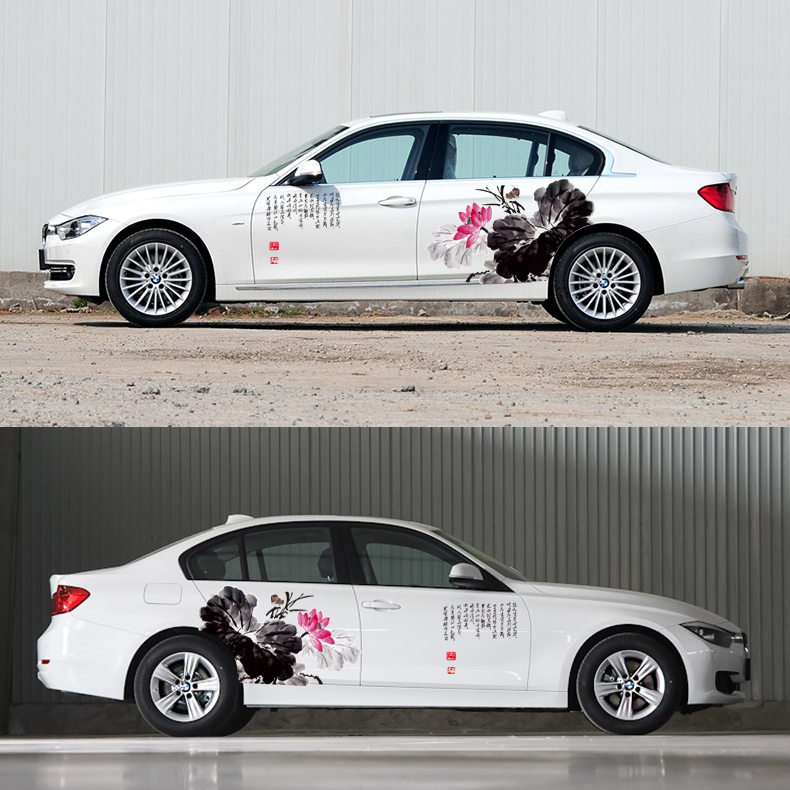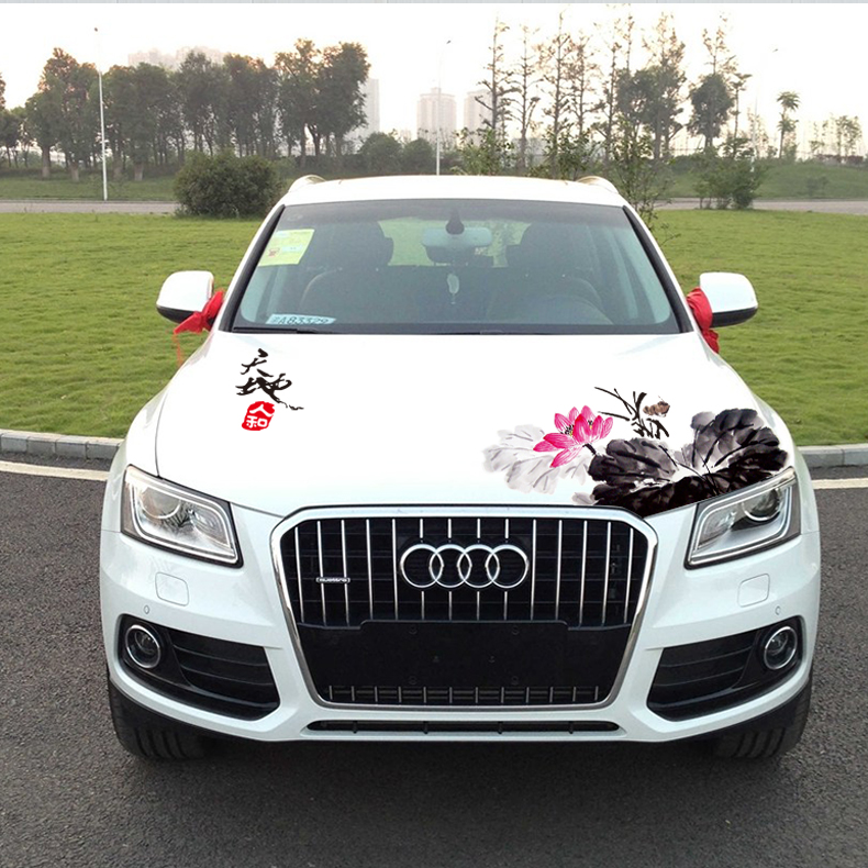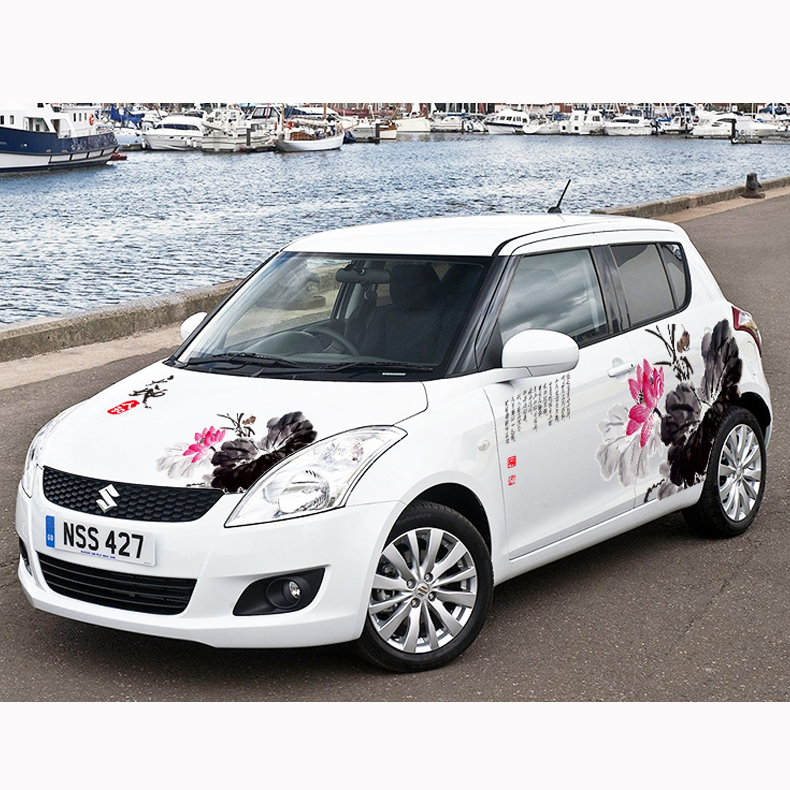 Car modified body pull flower sticker new Swift Chinese Feng Shui ink lotus car sticker painting