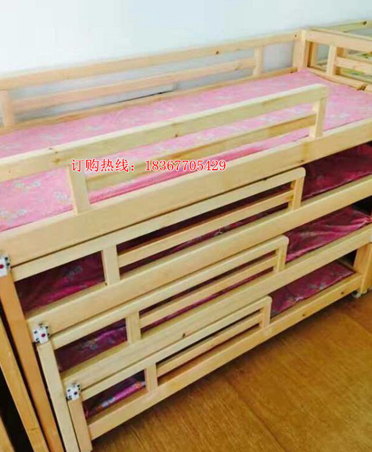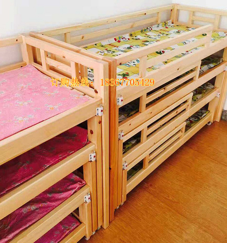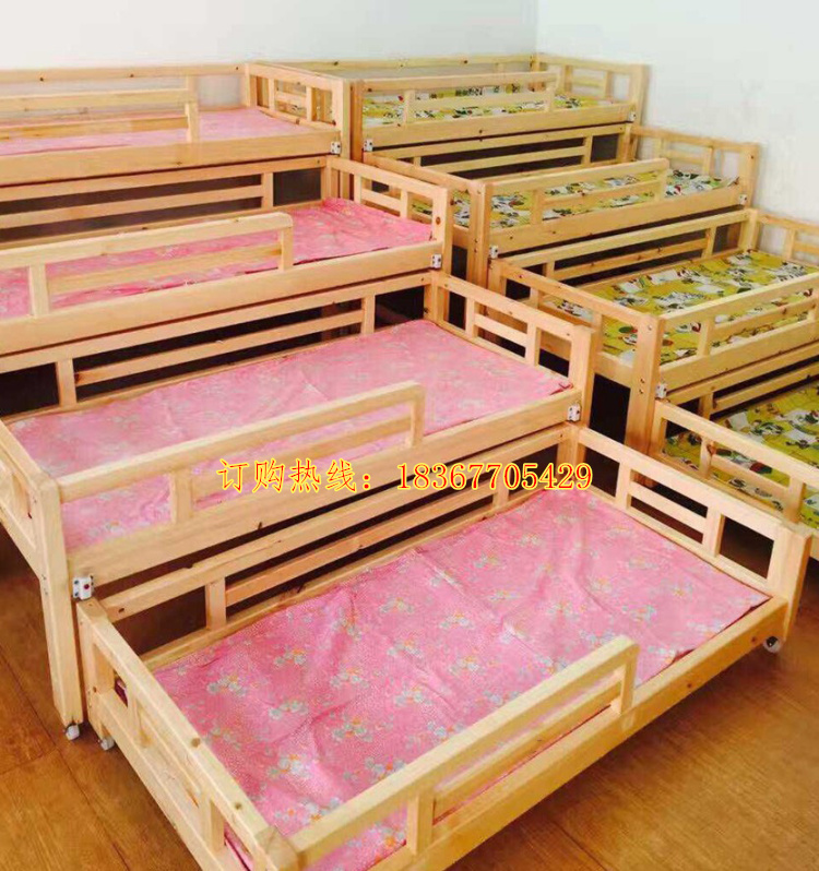 Kindergarten solid wood special four-layer push-pull bed children's camphor pine solid wood multi-layer nap bed baby special bed