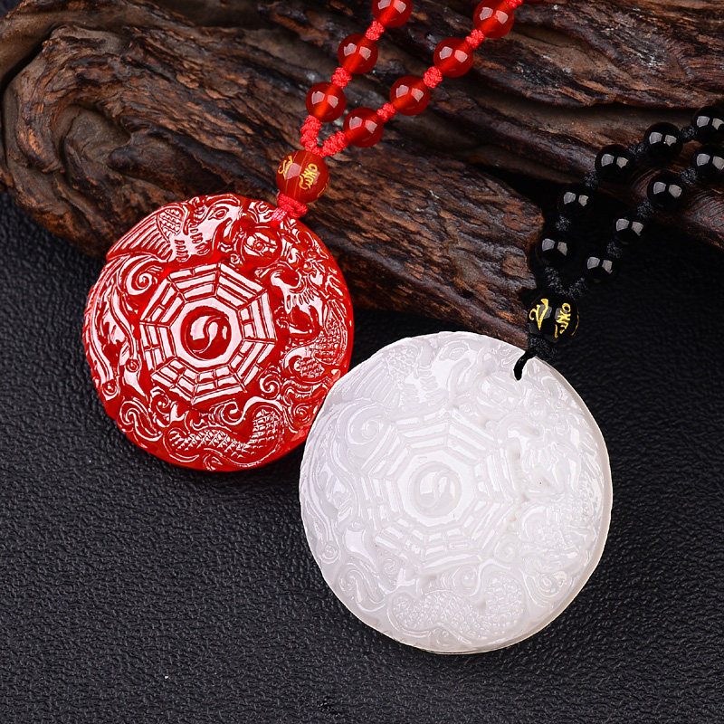 Gift white jade red Manau Long Fengyin Guanyin inspired by the spell pendant Kaitefoo Yin and Yang Five lines of gossip to protect the body