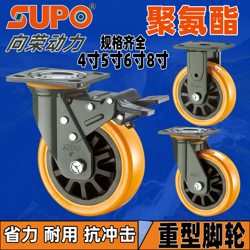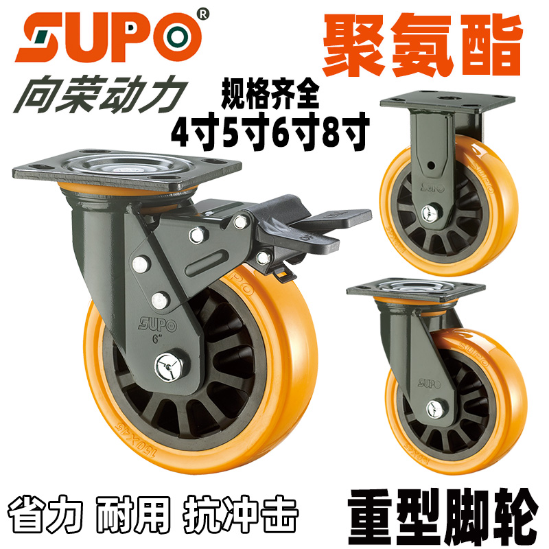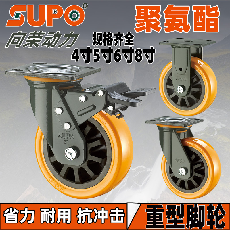 Xiangrong caster SUPO directional wheel 4 5 6 8 inch heavy-duty polyurethane brake caster mute acid and oil resistant