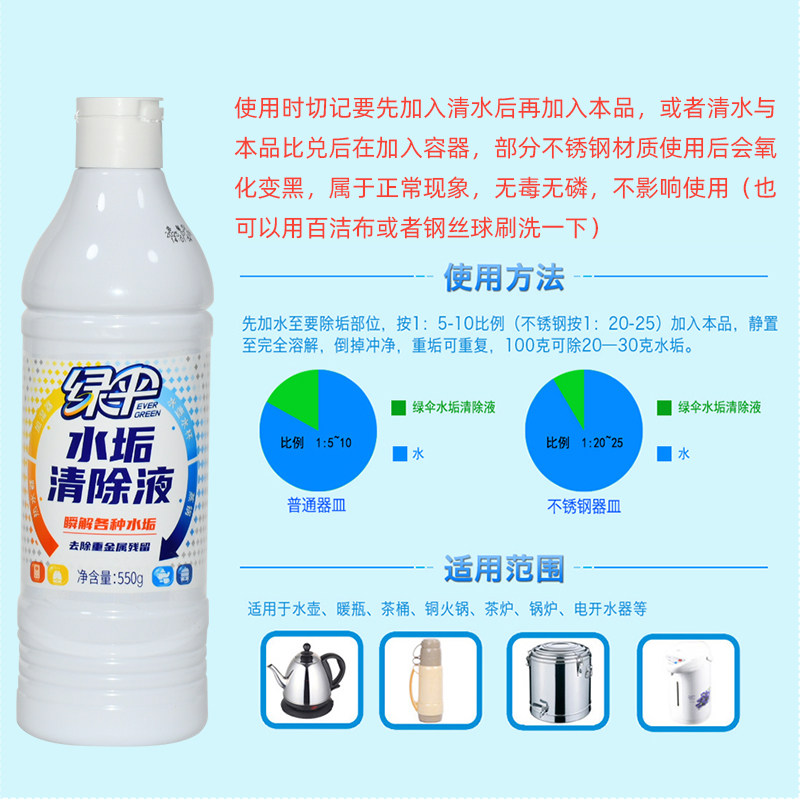Green umbrella scale cleaner electric kettle water dispenser descaling derusting tea scale cleaning household descaling remover