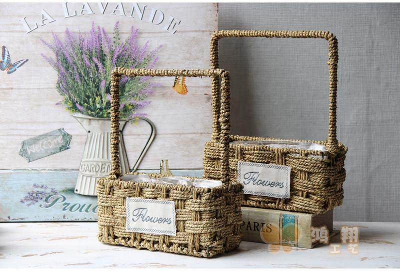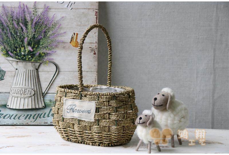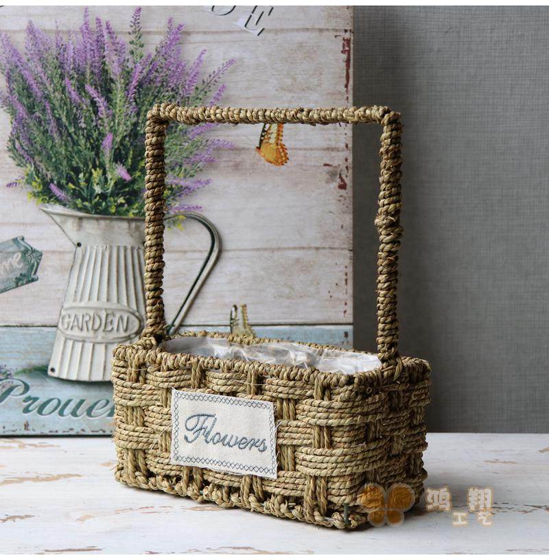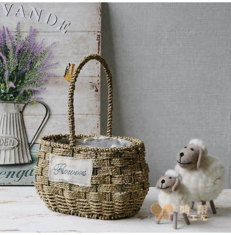 Grass-knitted portable flower basket straw choreography floral flower basket floral flower basket waterproof grass woven flower basket field basket