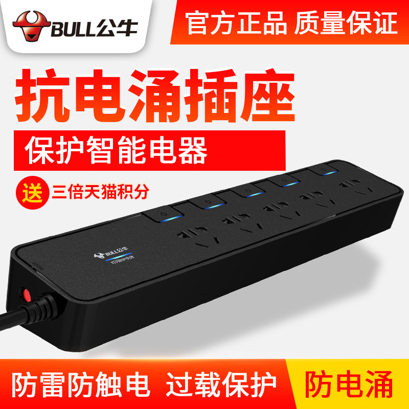 Bull socket household anti-surge wiring board overload protection plug row independent switch row plug 3 meters GN-H3053