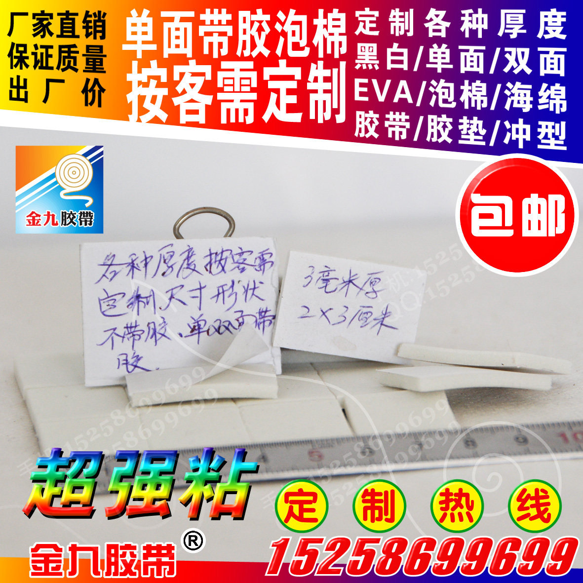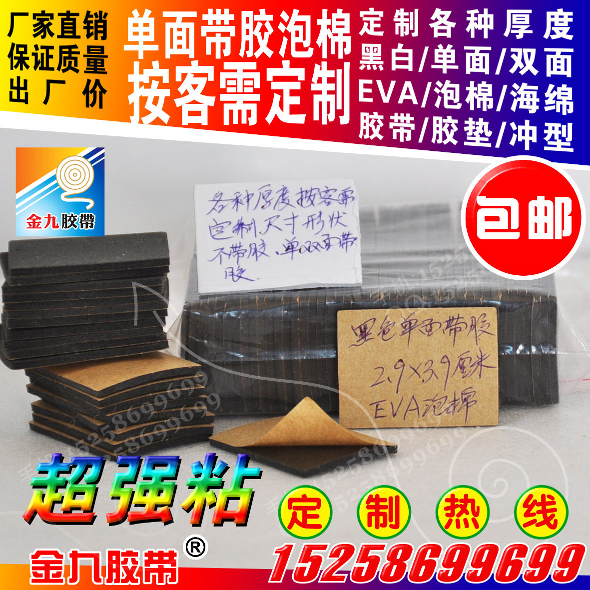 Black eva foam sponge foam single-sided adhesive 1mm thick 2 9cm wide 3 9cm long double paper can be customized sheet punching type