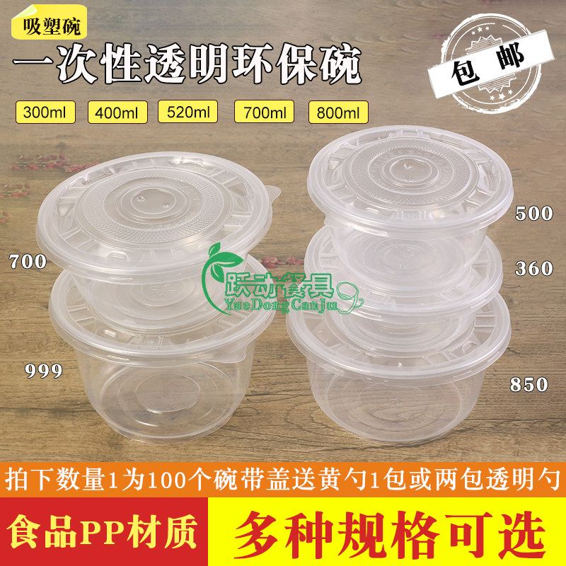 Disposable transparent plastic bowl 360 500 700ml 850 999 ml packing bowl with lid and soup bowl