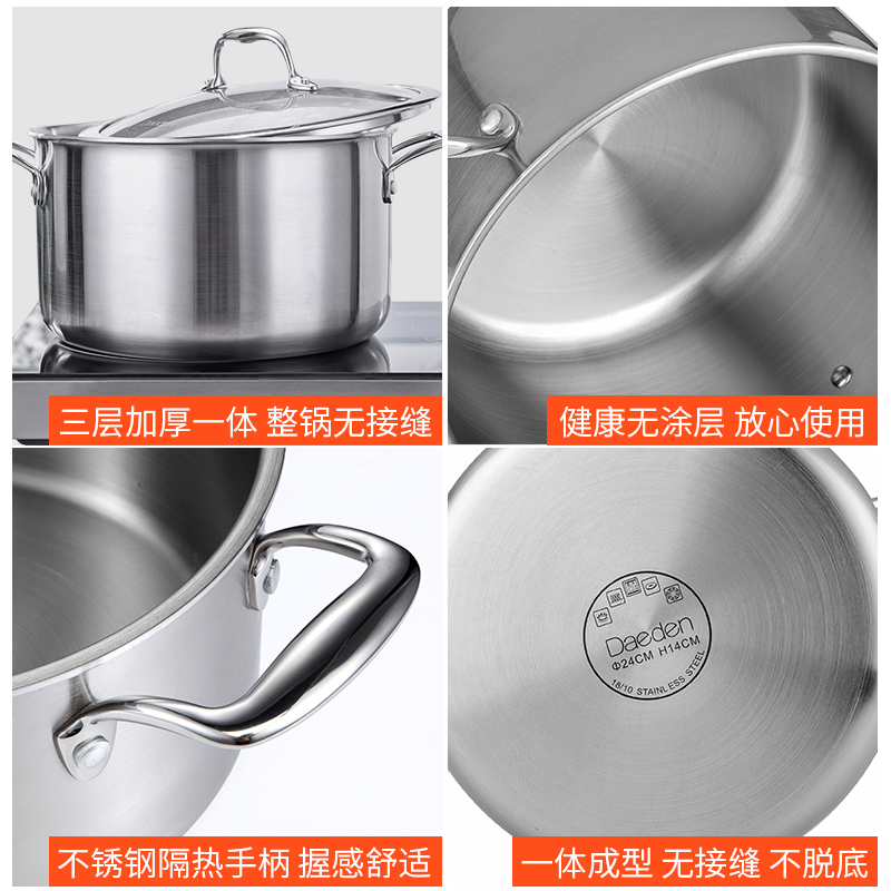 Germany daide soup pot 304 stainless steel thickened household soup pot cooking porridge non-stick pot gas induction cooker cooking pot