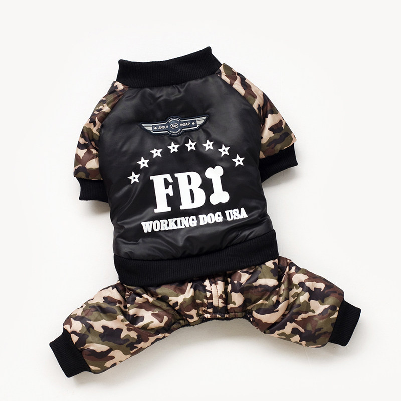 New FBI Camouflate Thicken Cotton Clothes Teddy Dogs Clothes Autumn Winter Dress VIP Pets Four Feet Clothes