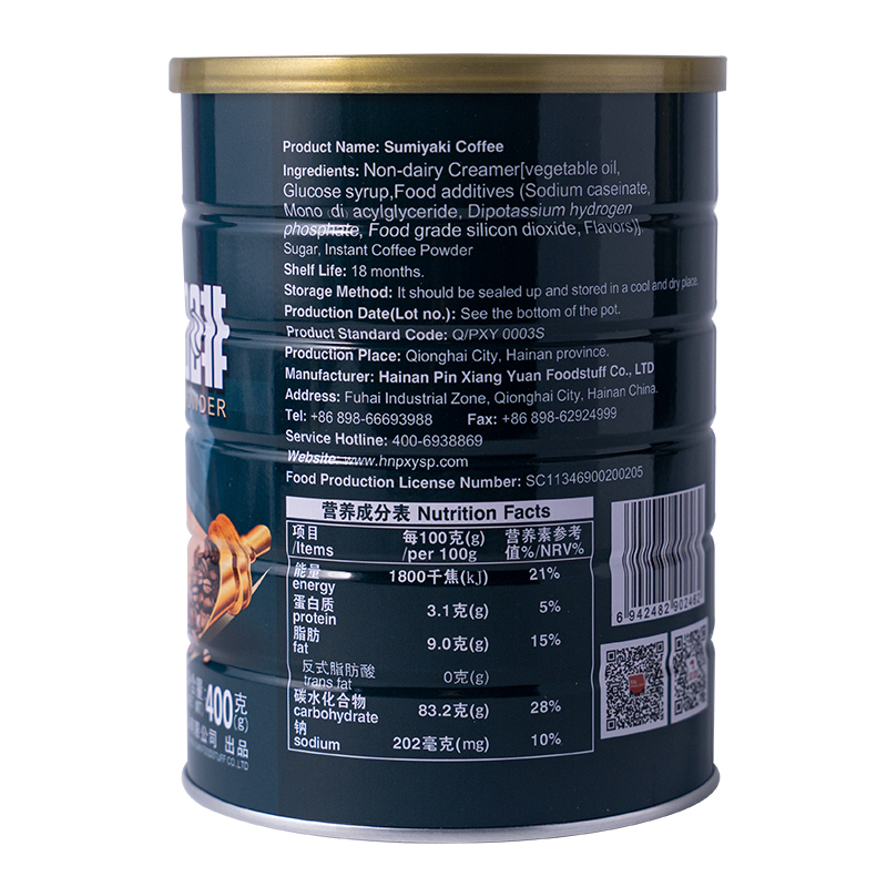 Plant fat end (hydrogenated vegetable oil glucose syrup food additive (sodium caseinate mono-double glycerol fatty acid ester phosphate hydrogen dipotassium edible grade silica edible spices)) white sugar instant coffee powder