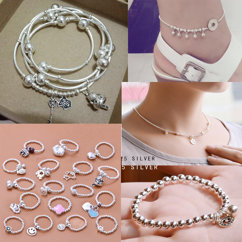 925 pure silver beads Beads Parting Beads Diy Accessories Handmade Silver Strings Beads Woven Rings Handmade Necklace Material Ornaments