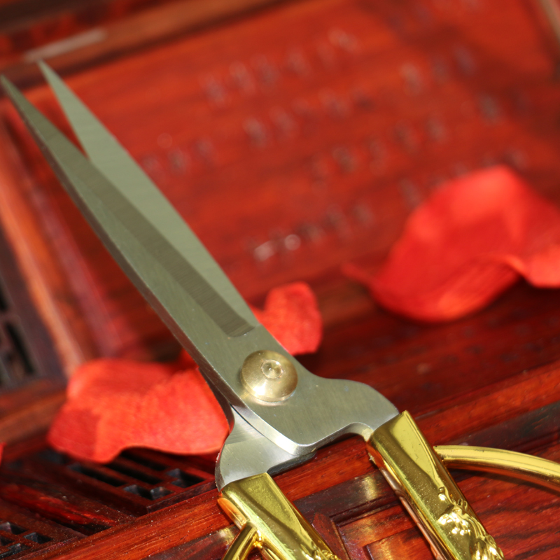 Wedding festive supplies Wedding dragon and phoenix gold scissors Bride Dragon and phoenix scissors opening award ribbon-cutting props