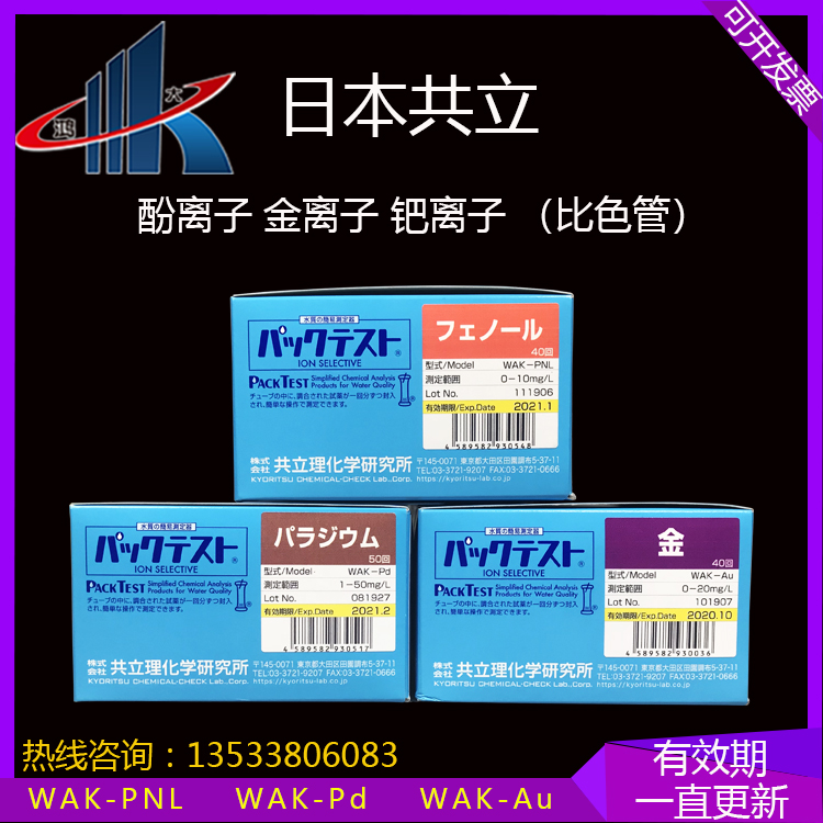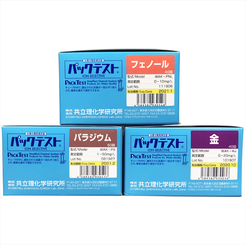 Japan co-establishment WAK-Au gold ion test case PNL phenol reagent packet Pd bivalent palladium ion ozone detection