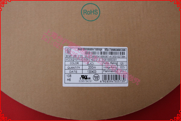 WOLIDA Heat shrinkable sleeve Heat shrinkable tube Flame retardant Φ4mm Black UL RoHS CSA 200m