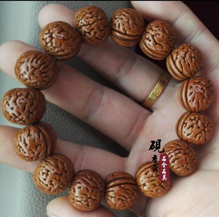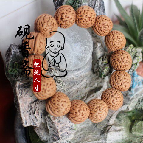Fine dwarf pile brain pattern peach core bracelet Wen play walnut hand string Pure wild natural peach core beads