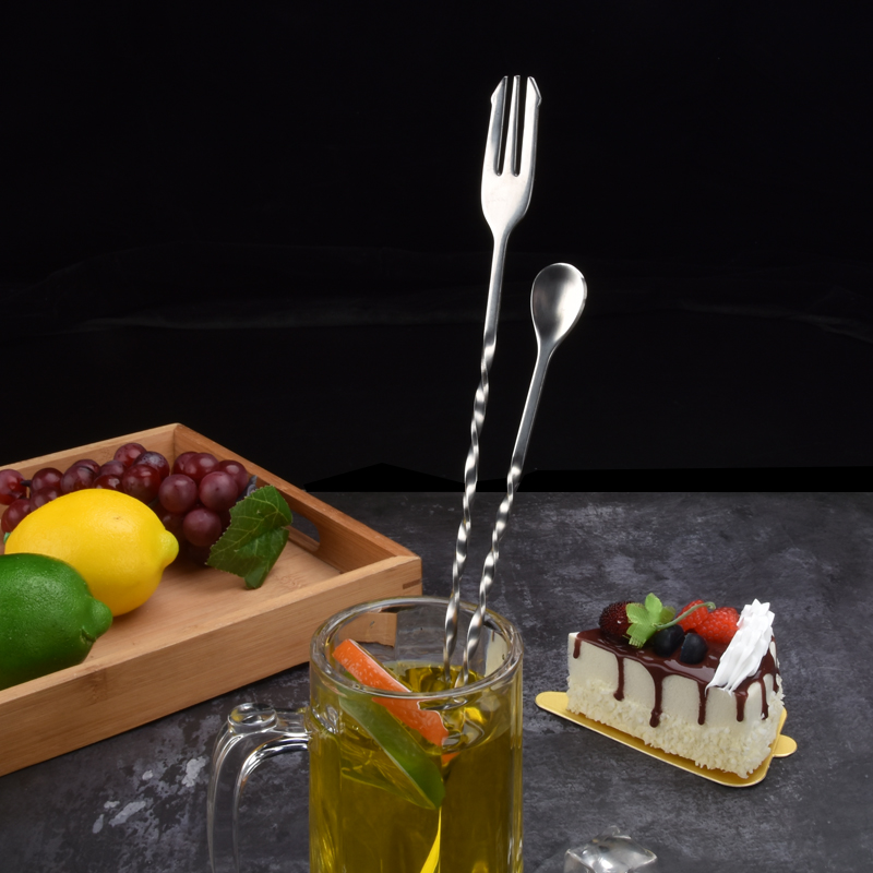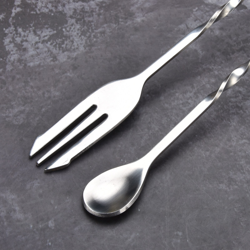 Stainless steel double head bar spoon bar teaspoon milk tea stirring stick lengthen handle mixing spoon adjustable wine tool barpoon spoon