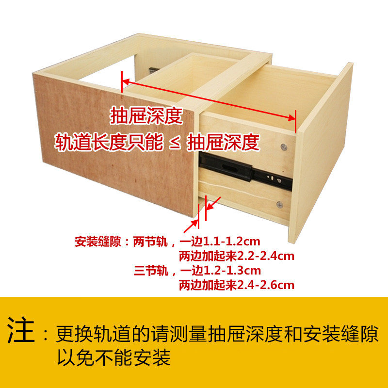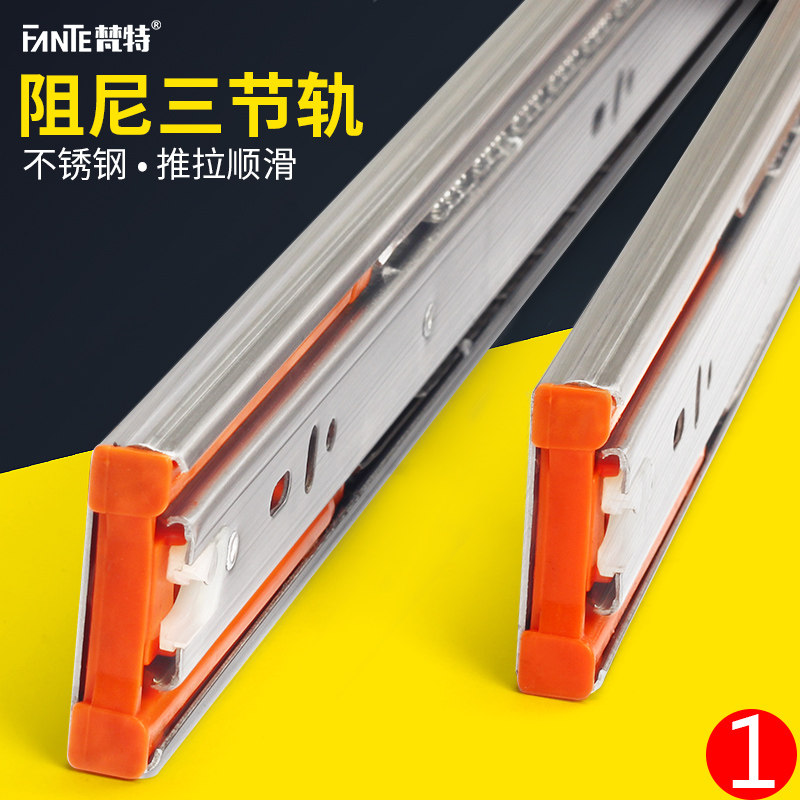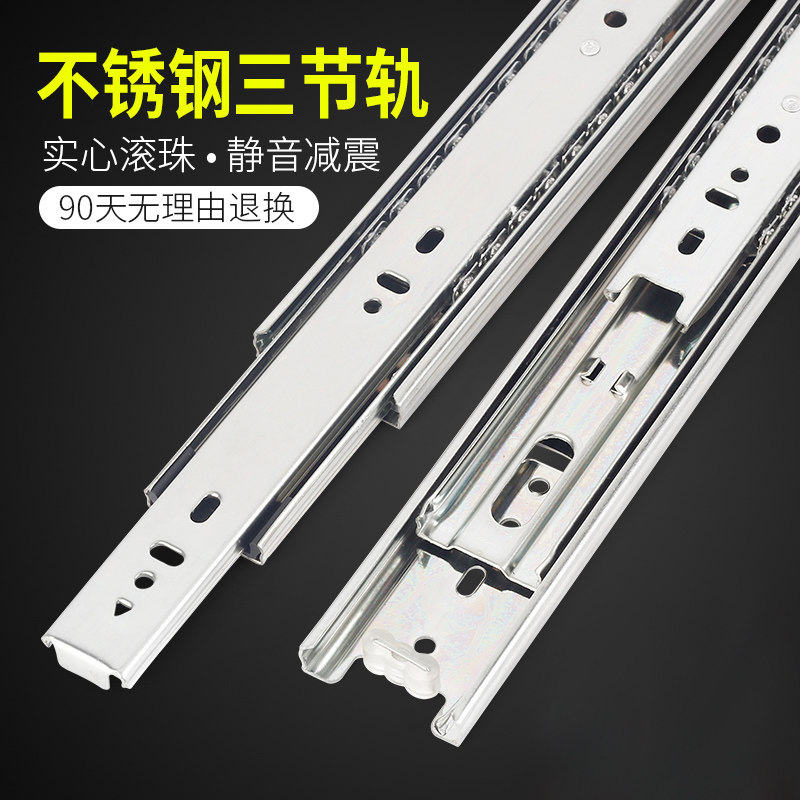 Drawer track Mute three-section track buffer slide Stainless steel ball drawer slide Clothing overall cabinet drawer guide
