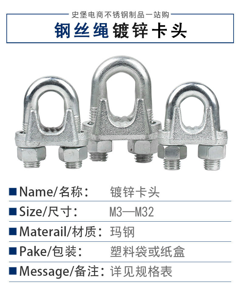 Wire rope clamping head clamping head rope card galvanized collet rope for wire rope card M3-M32 full-series promotion