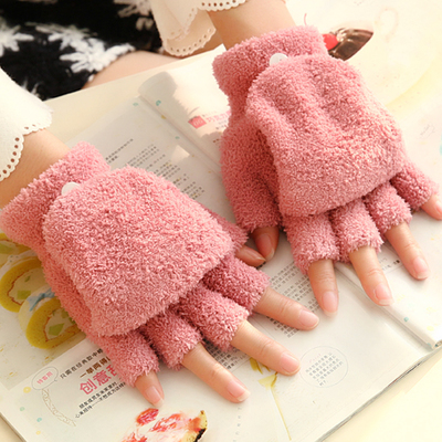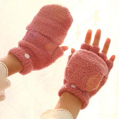 South Korean version Winter Fashion cute plush thickened male and female half-finger glove flip-finger double-duty glove