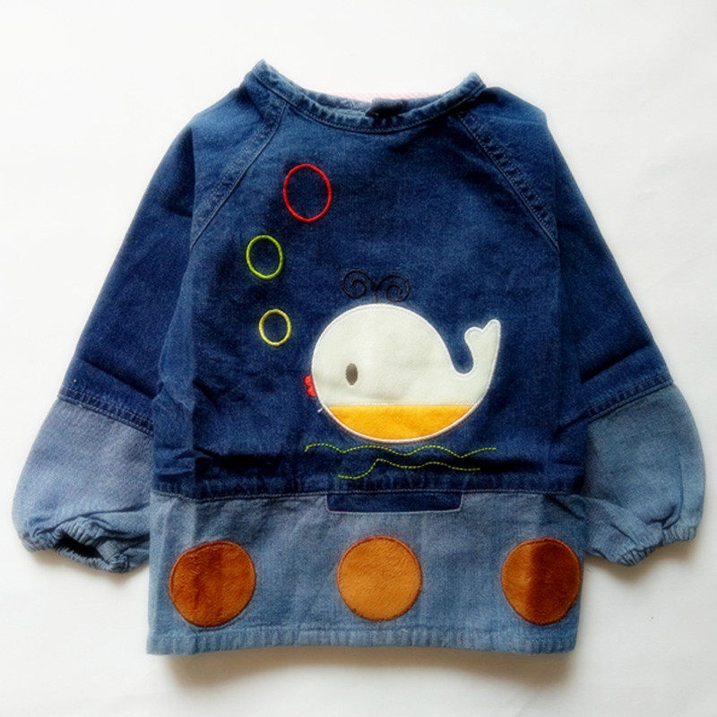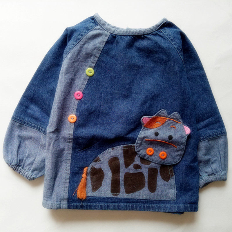Winter Baby pure cotton soft jeans cover for dinner and paint anti-clothes children's rice pocket cartoon