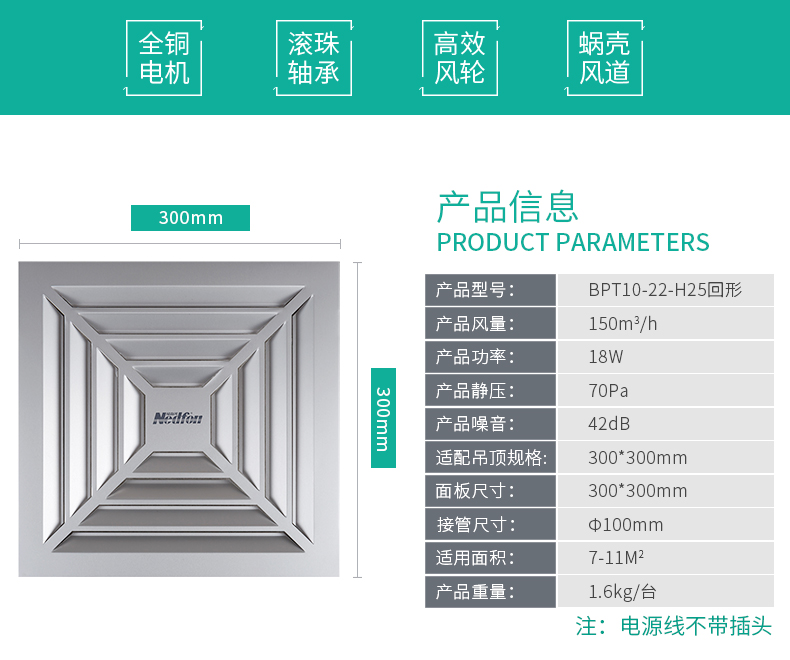 Promotion-Green Island Wind integrated ceiling ventilator BPT10-22-H25 boreholes 300 * 300 pipe exhaust fan