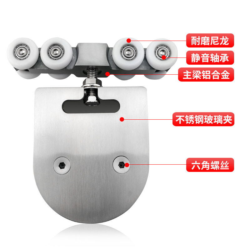 8 wheels No frame glass hanging door clip stainless steel Ramen pendant wheel glass door clip Ramen track pulley