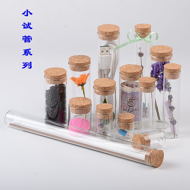 Wood Stopper Test Tube Transparent Glass Bottle Straight Drum Bottle Hsu May Bottle Rose Flower Tea Bottle Sea Cucumber Bottle Reagent Bottle Factory Direct