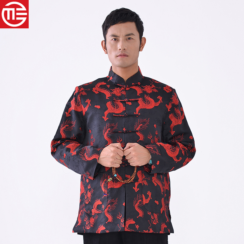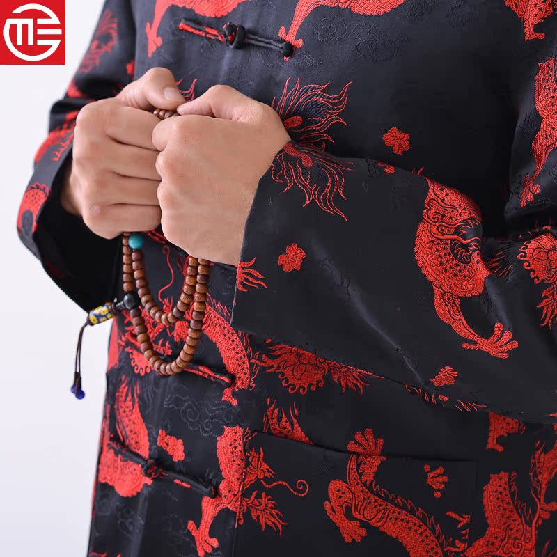 New Xiangyun embroidered dragon Men's long sleeves sandwich cotton festive Tang costume Daddy cotton jacket birthday birthday party wedding dress