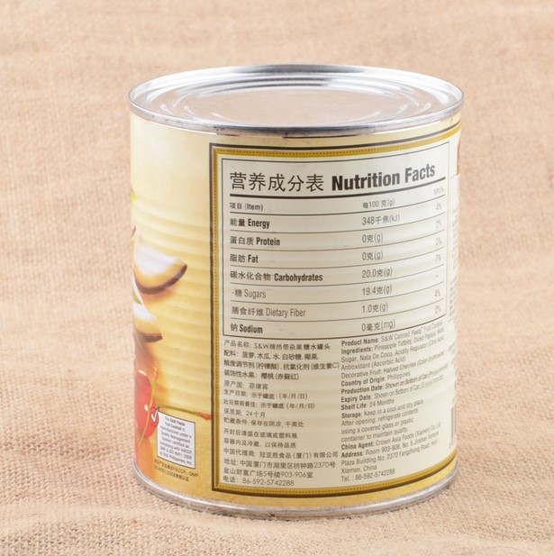 Kunming Tianyou Baking Raw Material SW Tropical Miscellaneous Fruit Can (Shjin Fruit) 850g Pizza Cake Special