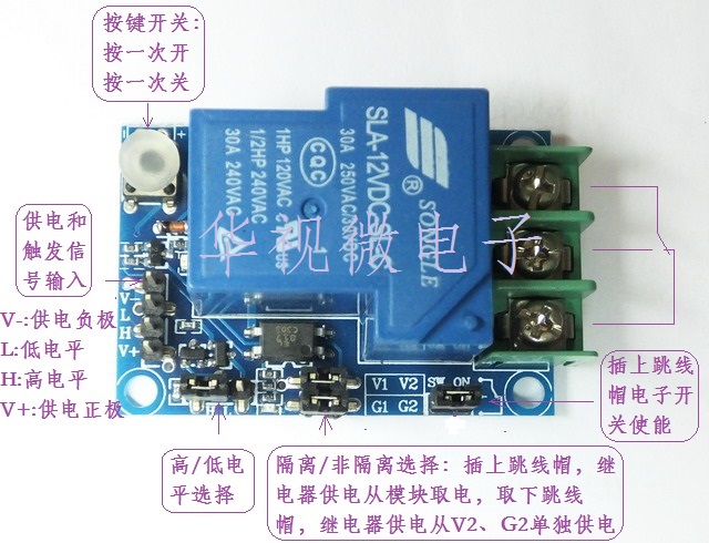 1-way self-lock relay 1-way relay module one-key switch multifunction optocoupler isolation 30A