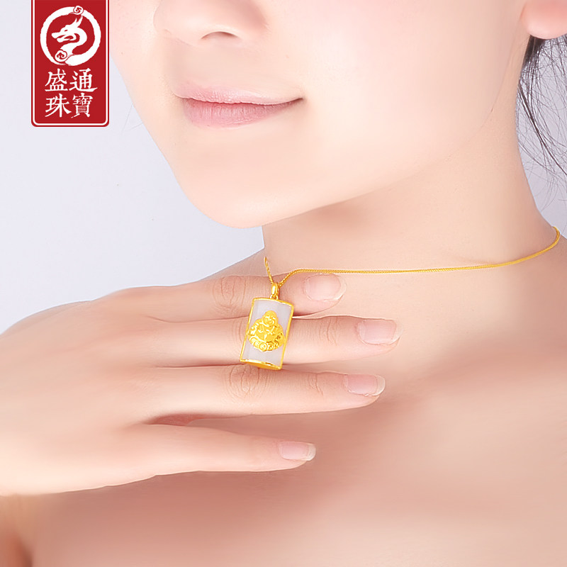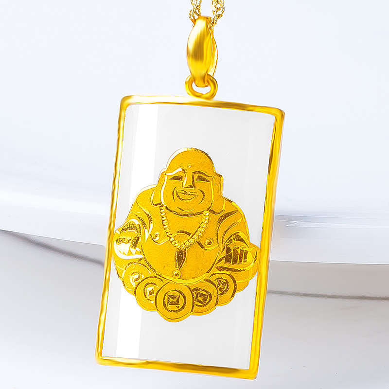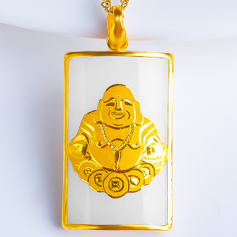 Shengtong Jewelry Gold Inlaid Jade Buddha Pendant Hetian Jade Inlaid Gold Buddha Gong Jade Pendant Square Brand Maitreya Buddha Laughing Buddha Jade Pendant
