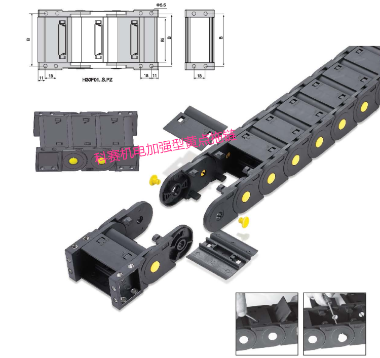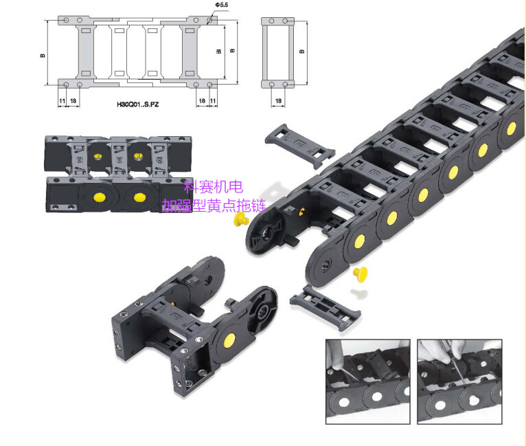 JFLO enhanced towline tank chain Yellow dot towline HP H30*100H30*103H30*125 Two years warranty