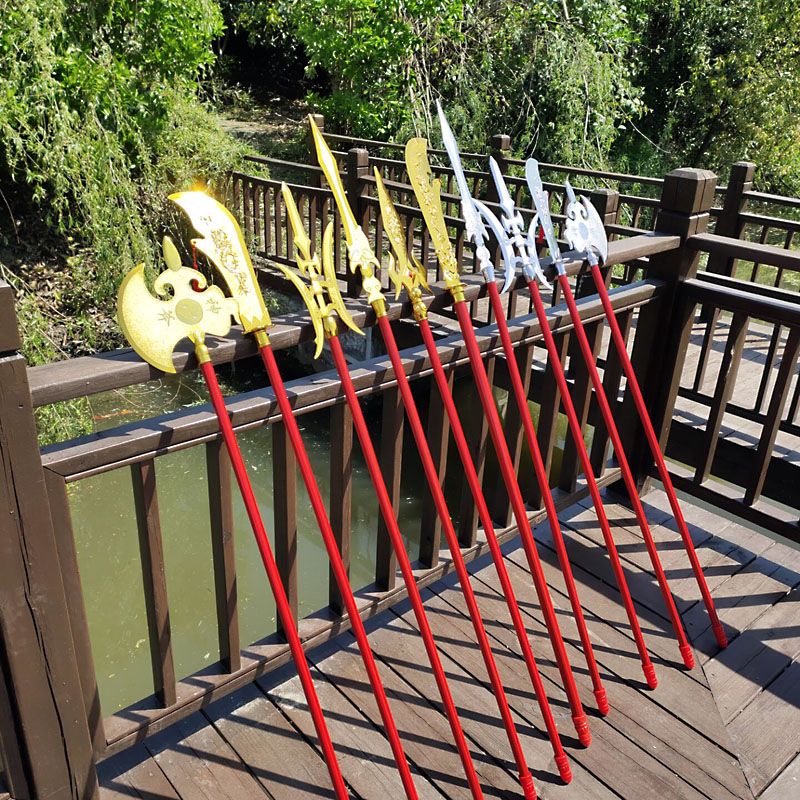Silver Fangtian Painting Blade (112cm) Silver God Axe (105cm) Silver Guan Gong Knife (112cm) Silver Zhao Yun Gun (125cm) Golden Guan Gong Knife (112cm) Golden Zhao Yun Gun (125cm) Golden Fang Tian Painting Axe (112cm) Golden God Axe (105cm) Golden Fire Tip Gun (116cm) Extended Silver Guan Gong Knife (132cm) Extended Silver Fang Tian Painting Knife (132cm) Extended Silver Zhao Yun Gun (145cm) Extended Silver God Axe (125cm) Extended Golden Guan Gong Knife (132cm) Extended Golden Fang Tian Painting Blade (132cm) Extended Golden Zhao Yun Gun (145cm) Extended Golden God Axe (125cm) Extended Golden Fire Tip Gun (136cm) Large Golden Guan Gong Knife (142cm) Silver Four-Piece Set (Small Form) Silver Four-Piece Set (Extended Version) Golden Five-Piece Set (Small Model) Golden Five-Piece Set (Extended Model) Full Set of Ten Pieces (Small Model) Full Set of Ten Pieces (Extended Version)