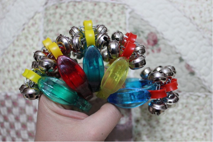 Kindergarten children shake a bell instrument to hold a bell dance Suzuki hand rattles a pair of bells
