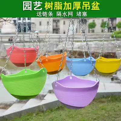 Thickened plastic flower pots, hanging pots, hanging pots, balcony planting flowers with iron chain hanging baskets, golden ge hanging pots