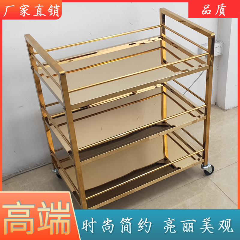 Three-layer dining car titanium alloy color new silver titanium alloy small 600*300*730 Two-layer bottle car gold