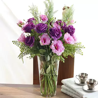 Simulation flower rose single branch bouquet silk flower decoration flower art living room indoor bedroom table fake flower decoration