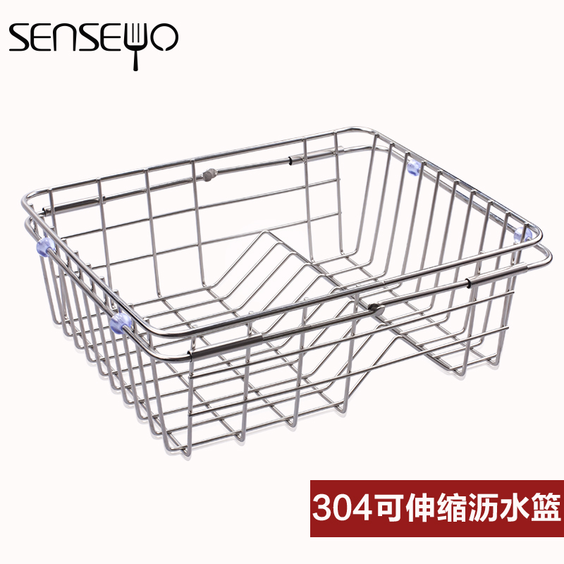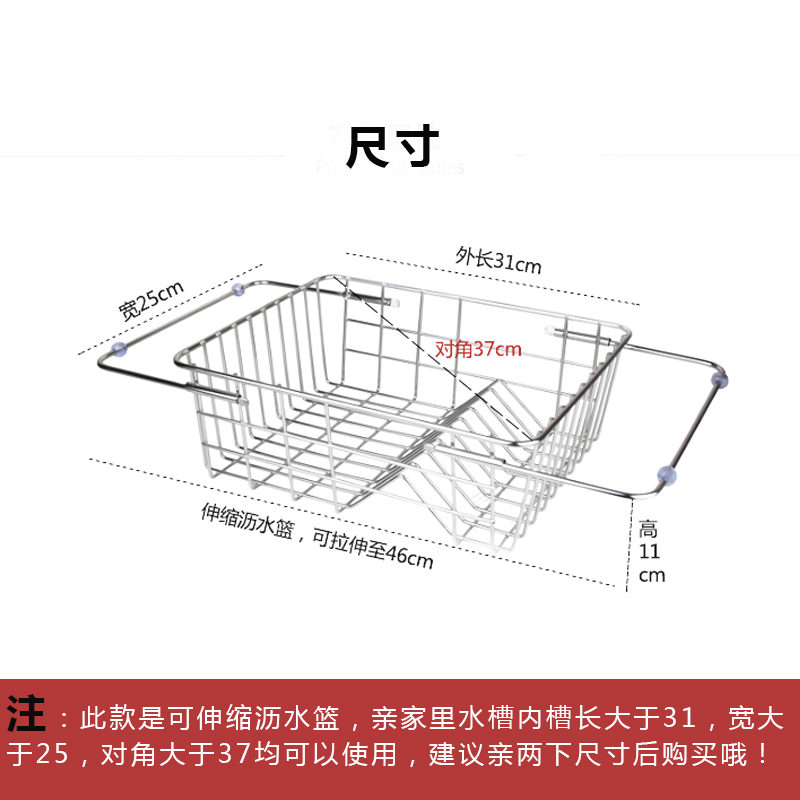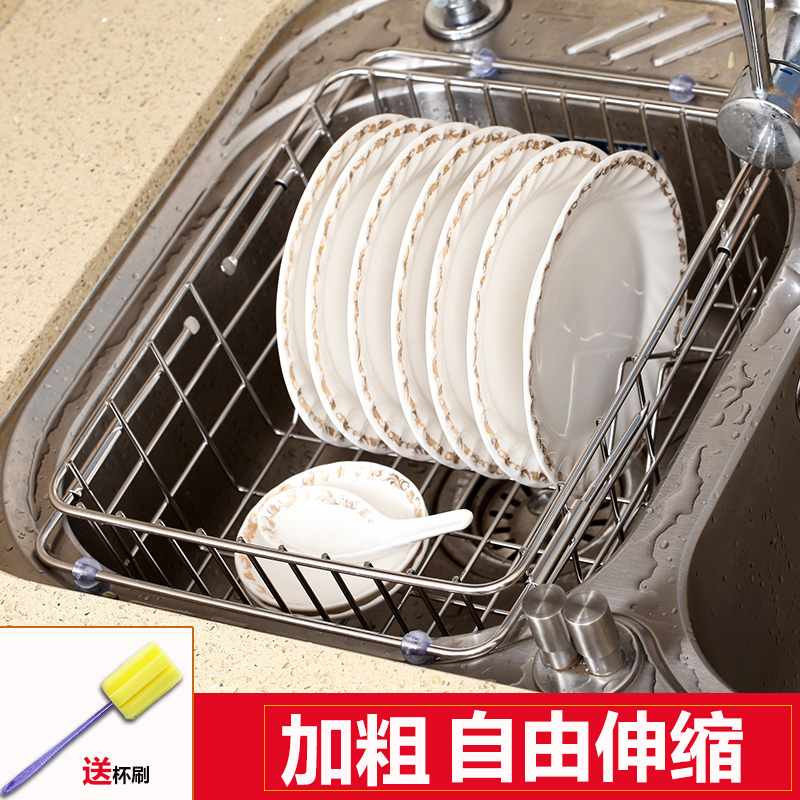 Kitchen drain rack drain basket 304 stainless steel sink dish rack drying dish rack retractable vegetable washing water filter basket
