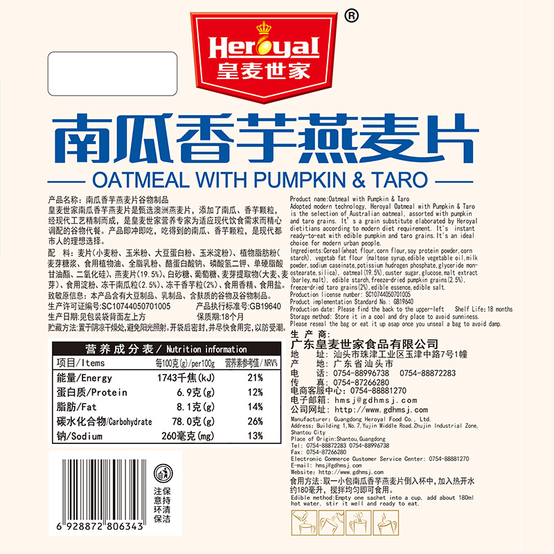 Royal Wheat Family Pumpkin Taro Oatmeal Instant Breakfast Brewed drink Porridge Instant food Dormitory instant lunch