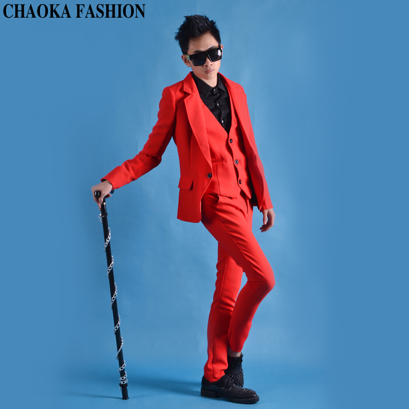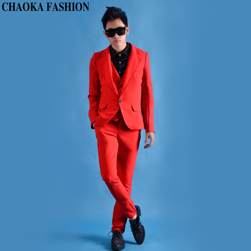 Handsome to no friends big red suit with hairdresser nightclub DS singer stage performance suit