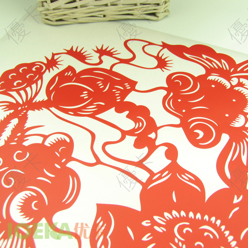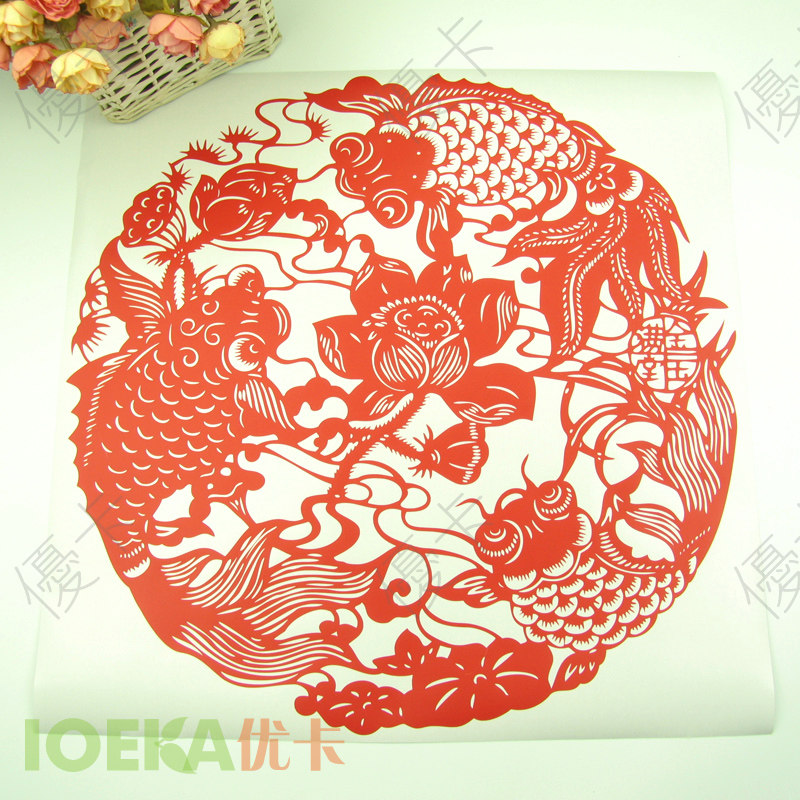 Auspicious fish blessing window decals paper-cut stickers New Year and Spring Festival festive glass stickers (Jinyu Mantang) CH0453