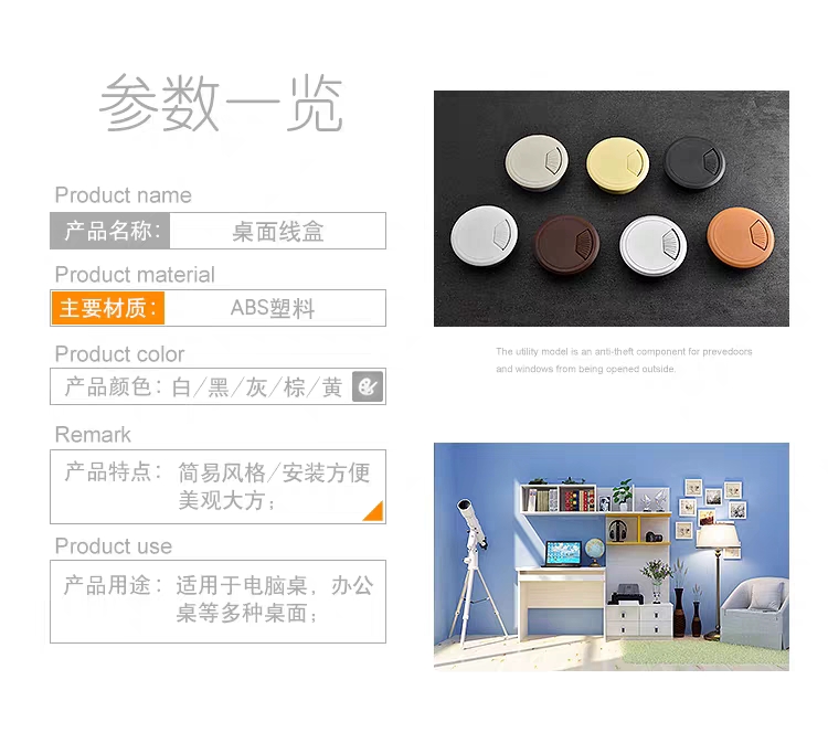 Computer desktop cable management box Office desk through cable management box Outlet hole box cover Furniture round cable management box 50mm