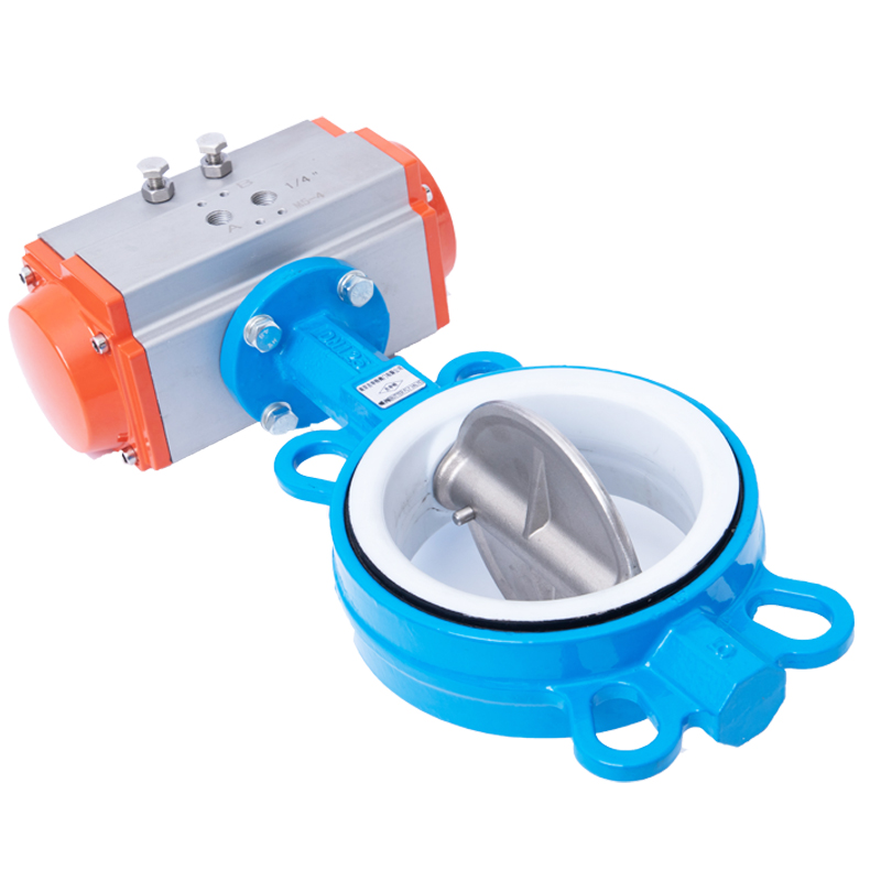 D671F-16 pneumatic PTFE wafer butterfly valve pneumatic valve DN50 65 80 100 125 150 200 250