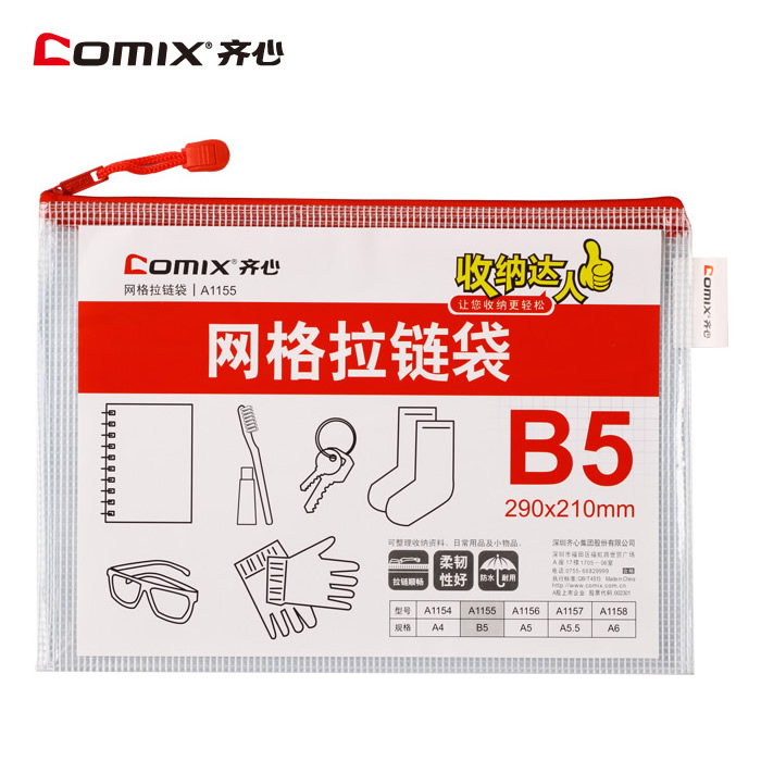 Qixin grid zipper bag file bag large-capacity waterproof Korean small fresh student examination stationery storage test paper pvc transparent pencil bag office meeting information file financial bill bag