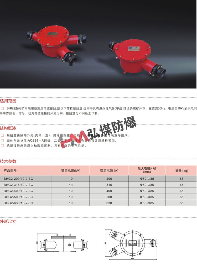High Voltage Cable Junction Box BHG1-400 6-3G Flameproof High Voltage Junction Box 400A Junction Box